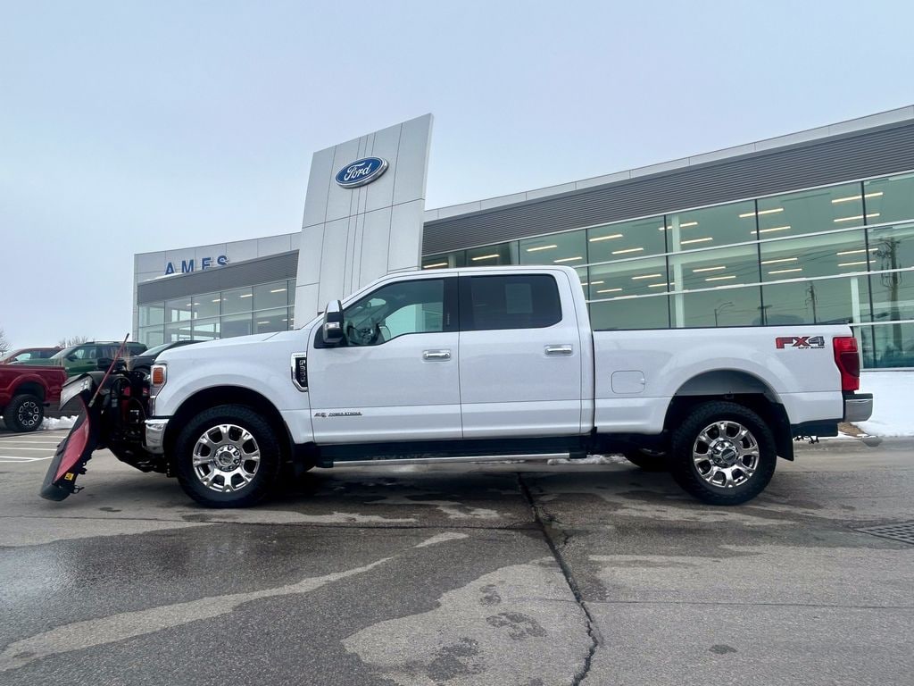 The 2021 Ford F-350 Super Duty Lariat which includes a 8 foot steel snow blade. This truck represents the ultimate in heavy-duty capability and refined comfort, finished in a classic Oxford White exterior. Powered by the formidable Power Stroke 6.7L V8 turbodiesel engine delivering 475 horsepower and a massive 1,050 lb-ft of torque, this powerhouse pickup offers best-in-class towing and payload through its 10-speed TorqShift automatic transmission and advanced 4WD system with selectable drive modes for supreme capability in all conditions.